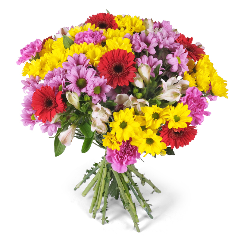 Zawsze świeże kwiaty Jeśli miałbyś opisać radość za pomocą kwiatów, wyszedłby prawdopodobnie właśnie taki bukiet. Gerbery, santini, goździki i alstromerie mieszają się w kompozycję pełną życiowej energii. To nie jest bukiet na smutne chwile – to kwiaty, które celebrują wszystko, co dobre. Podaruj je komuś, kto potrzebuje przypomnienia, że świat potrafi być piękny. Albo kup sobie, bo zasługujesz na coś ładnego.